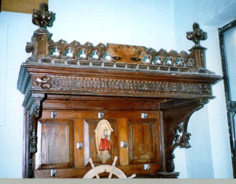 A pure heart create in me, O God see if we could find the gggrandfathers grave in Eastersnow cemetery. We talked to locals and bought chalk to read the faded old graves but to no avail. We also called into Fr Leonard, the Croghan parish priest, to see if there were any plot records (which there weren't). However on the way out of his house I asked him about a throne-like chair in his porch. He said that it was quite old and had come from a bishops house locally. Along the top of the wooden 'canopy' of the bishops throne were carved the words'Cor mundum crea in me Deus' - the Crean family motto..... |